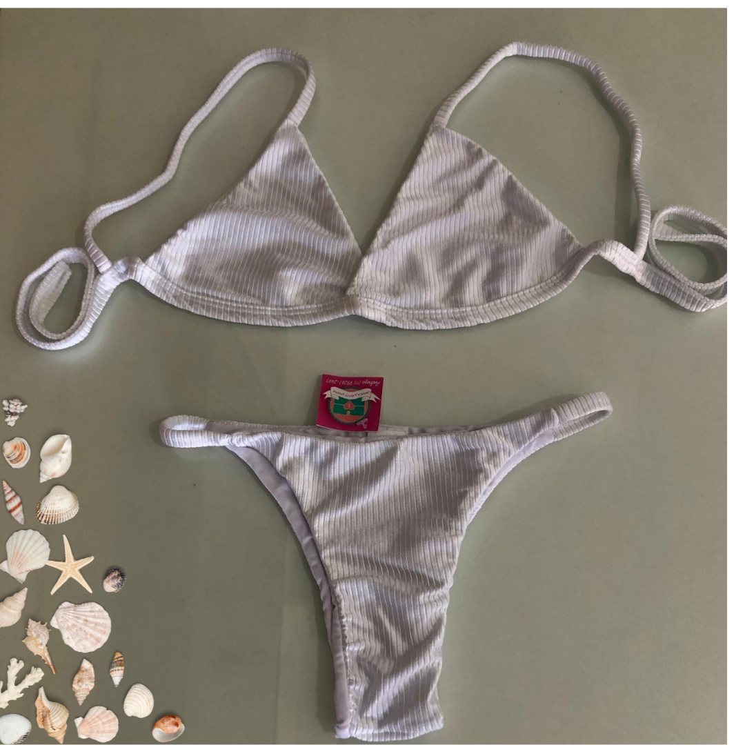 1 BIQUINE BRANCO CANELADO SEM BOJO ALÇAS FIXAS ,LATERAL FINA .
